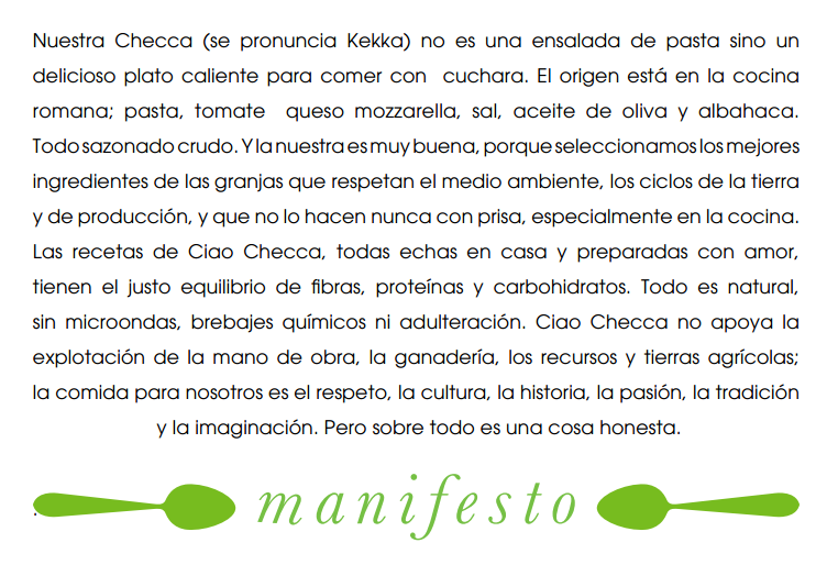 Llega a Valencia Ciao Checca, un innovador concepto de restaurante Slow Street Food, que propone un formato que fusiona el estilo “take away” con la autenticidad de la comida italiana, que como expresa su Manifiesto “…es respeto, cultura, historia, pasión, tradición, imaginación y por sobre todo, honestidad”.