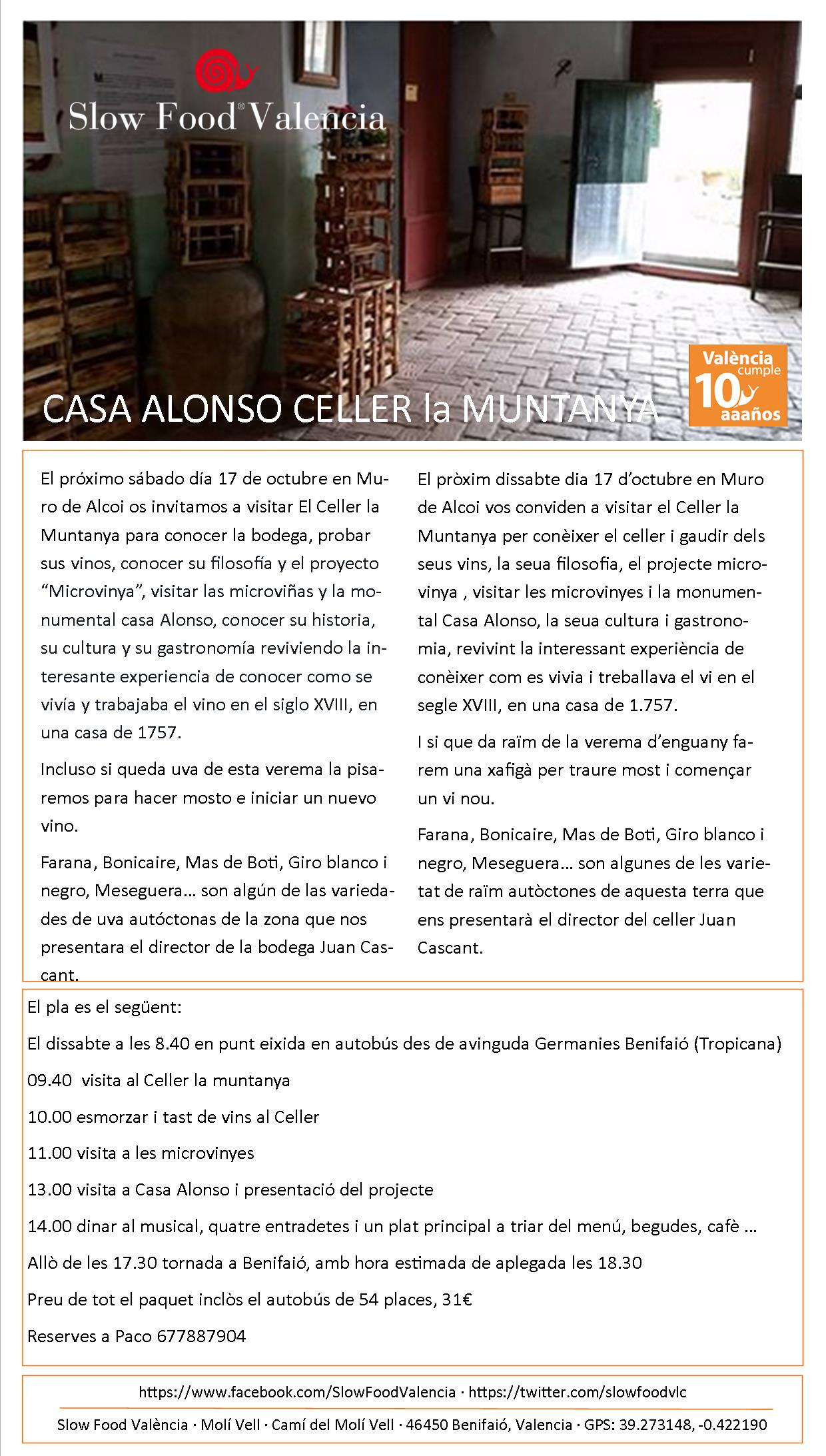 El próximo sábado día 17 de octubre en Muro de Alcoi os invitamos a visitar El Celler la Muntanya para conocer la bodega, probar sus vinos, conocer su filosofía y el proyecto “Microvinya”,