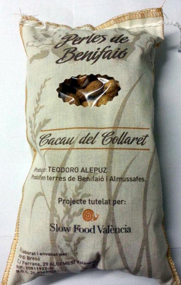 El Cacau del Collaret es el primer proyecto de recuperación de variedades autóctonas en peligro de extinción, tutelado por el Convivium Valencia de Slow Food. Este “cacahuete del terreno” se caracteriza por su profundo y agradable sabor, el cual se debe a su alto contenido oleico y su nombre, “collaret”, le viene asignado por la pronunciada disminución de la vaina entre los dos granos, formando una especie de “collar” apretado.